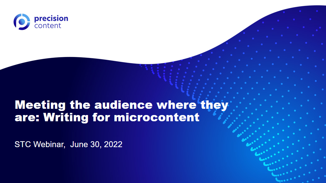 Meeting the audience where they are: Writing for microcontent. STC Webinar, June 30, 2022.